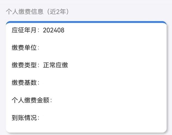 应征年月代表参保具体时间,如图202408则表示2024年8月,应征年月按照时间顺序依次显示,若存在未显示月份则表示对应月份没有参保。