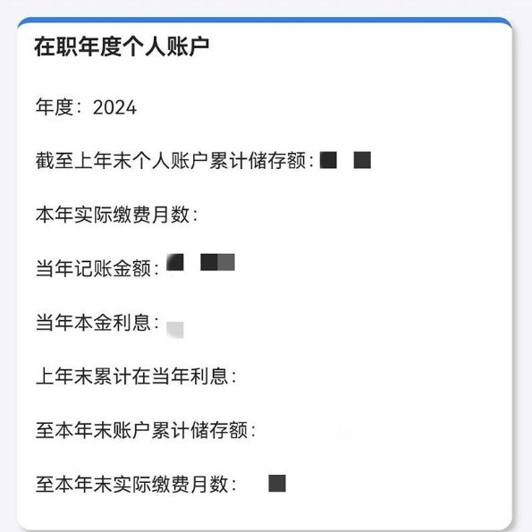 企业职工基本养老保险的在职年度个人账户:目前职工基本养老保险年度为自然年,即每年的1月至12月为一个社保年度;您可通过此栏目查看您的职工基本养老保险个人账户的累计情况,如图所示截至上年末个人账户累计储存额则表示到2024年12月底您的职工基本养老保险个账累计金额;
